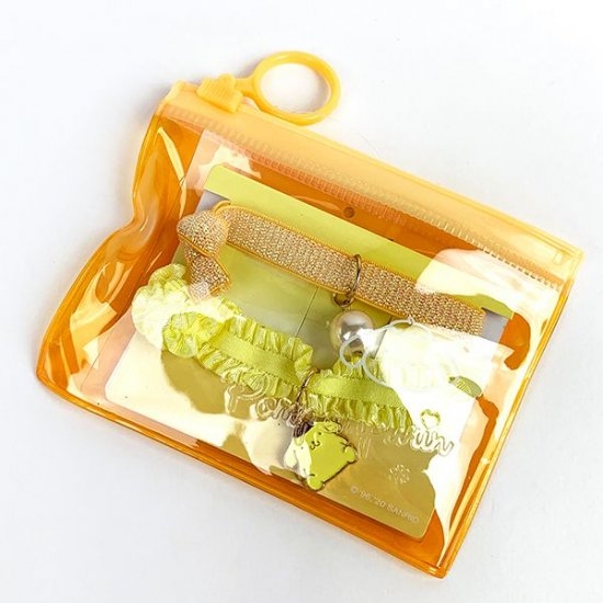 イエローカラーのポムポムプリンも♪イエローがかったゴールドのゴムと、イエローのフリル付きゴムのセットです。