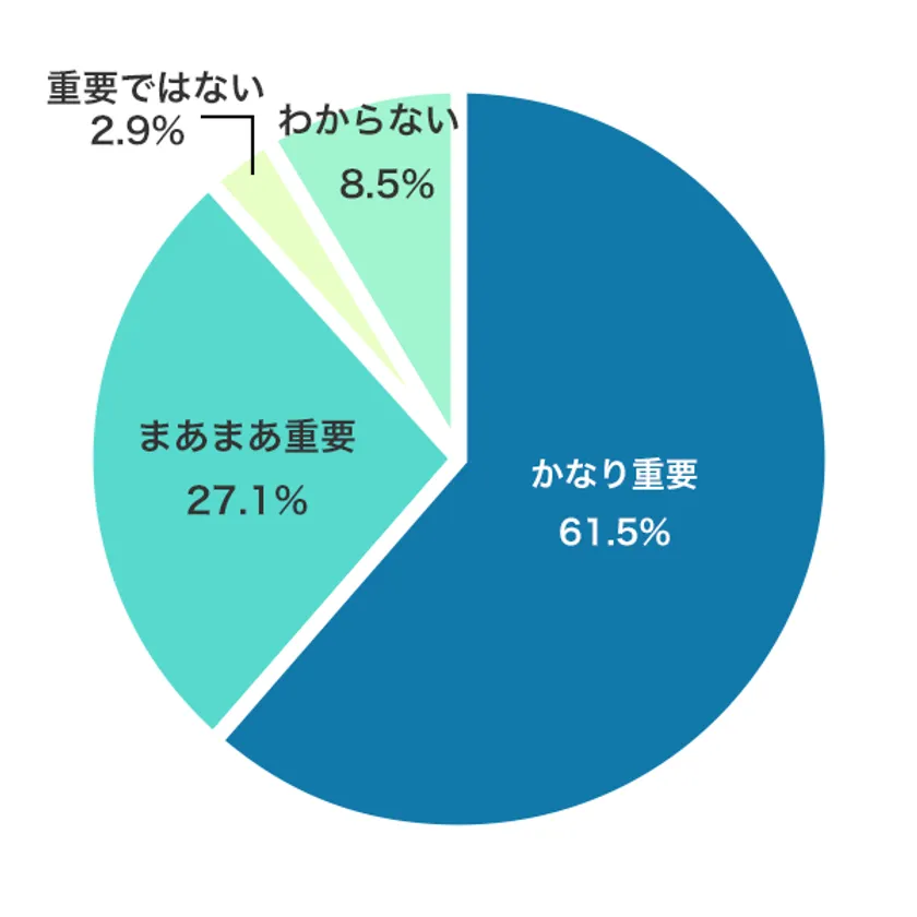 「かなり重要」という回答が約61%、「まあまあ重要」という回答が約27%、「わからない」という回答が約8%、「重要ではない」という回答は約2%でした。