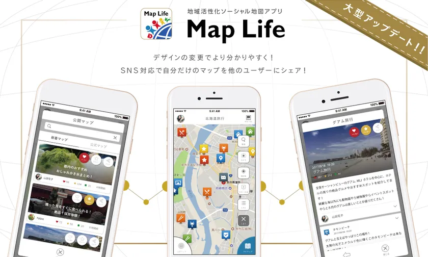 地域活性化ソーシャル地図アプリ「Map Life」に ソーシャル機能を実装 企業や自治体などは簡単に公式コンテンツが公開可能に