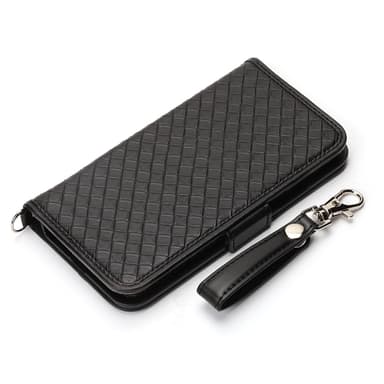 ・iPhone X用 フリップカバー PUレザー メッシュ調 ブラック