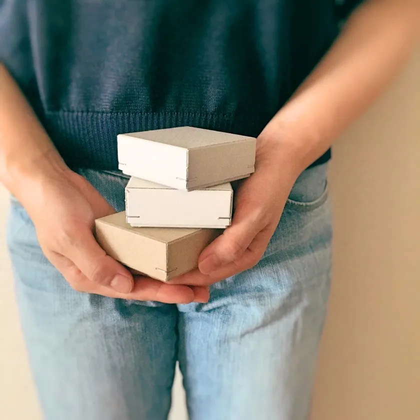 型を使わず手作業で断裁・筋入・組立を行うことで、小ロットでも単価を抑え、商品に合わせたサイズの箱を提供できます。