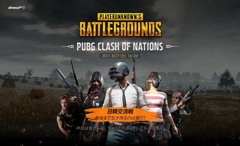 2017年8月25日 09:30株式会社アフリカTV(本社:東京都渋谷区、代表:田中 真広、以下 アフリカTV)は、PLAYERUNKNOWN'S BATTLEGROUNDS(以下 PUBG)のカスタムサーバーを使用した日韓交流戦を開催いたします。