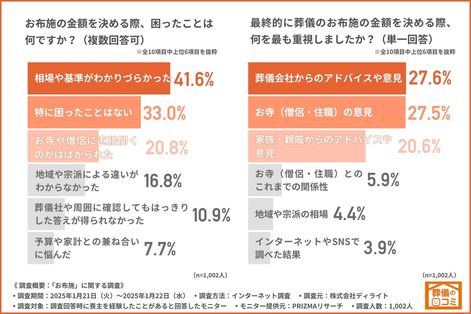株式会社ディライト(本社所在地:東京都新宿区、代表取締役:高橋 亮)は、喪主を経験したことがある方を対象に、「お布施」に関する調査を行いました。