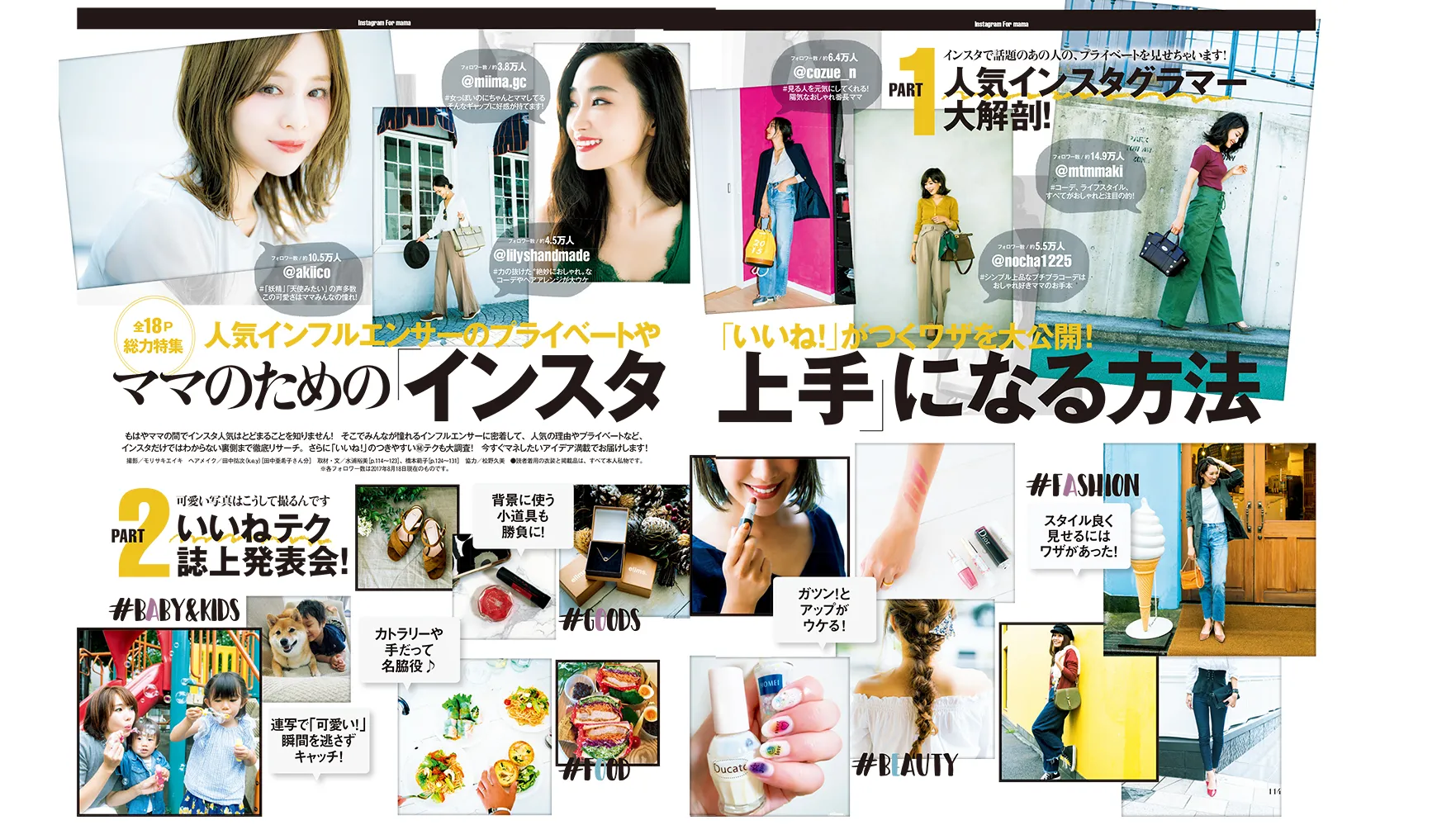 もはやママの間でインスタ人気はとどまることを知りません!そこでみんなが憧れるインフルエンサーに密着して、人気の理由やプライベートなど、インスタだけではわからない裏側まで徹底リサーチ。さらに「いいね!」のつきやすいテクも大調査!