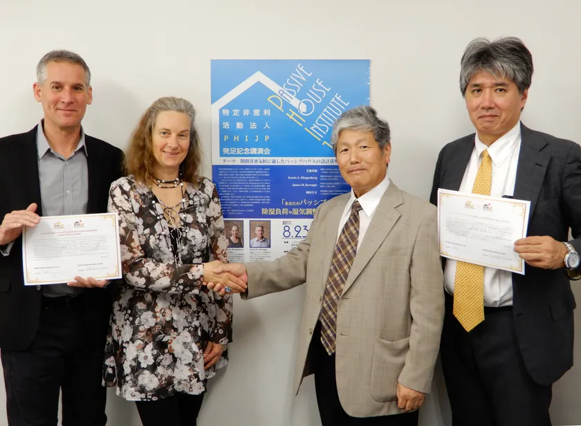 2017年8月29日 13:00特定非営利活動(NPO)法人PHIJP(日本パッシブハウス研究所)は、8月23日に東京のトラストシティ・カンファレンス京橋において、PHIUS(米国パッシブハウス研究所)の二人の共同設立者キャトリン・クリンゲンバーグさん(PHIUS理事・事務局長)とマイク・カネェイギスさん(PHIUS理事・教育部長)をお招きして「季間蒸暑気候に適したパッシブハウス基準と建設実践 ─日本で共有すべき米国発の貴重な最新情報─」をテーマとしてNPO法人PHIJP発足記念講演会を開催しました。講演会は、芝池英樹理事(京都工芸繊維大学准教授・工学博士)が、今回のテーマで基調講演をお願いするに至った主旨と講演で鍵となる専門知識を概説し、PHIUS来賓ご両名の基調講演へ話が引き継がれました。