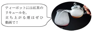 ティーポットには紅茶のリキュールを。立ち上がる煙はぜひ動画で!