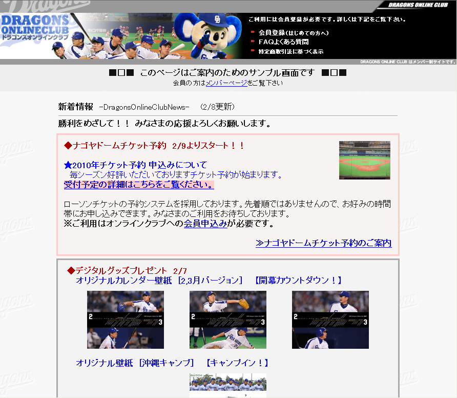 ドラゴンズオンラインクラブ http://sports.biglobe.ne.jp/dragons/club.html