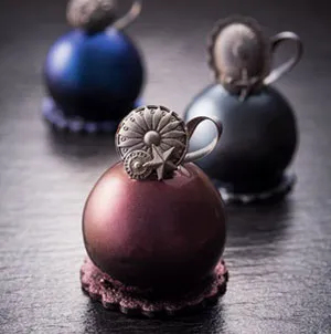 第3弾となる今回は、シルバーの持つ、知的で洗練された、そして上品で高貴なイメージをケーキで表現いたしました。当ホテルのテーマカラーのパープルをはじめ、25周年記念テーマのシルバー、輝きが美しいブルーの3色で展開いたします。トップにのせたチョコで模ったアクセサリーもお召しあがりいただけます。