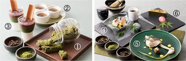 新しい宇治茶の在り方を探求し続ける「伊藤久右衛門」と「京都新阪急ホテル」とのコラボレーションで宇治茶の新たな魅力を感じていただけるメニューをご用意いたしました。レストラン「ブールヴァール」では、ほうじ茶と番茶の茶葉を使用した創作フランス料理や、抹茶やほうじ茶の豊かな香りや味わいをお愉しみいただけるデザートなどをバイキングメニューにて提供いたします。また、バー「リード」では抹茶を使用した2種類のカクテルをお愉しみいただけます。
