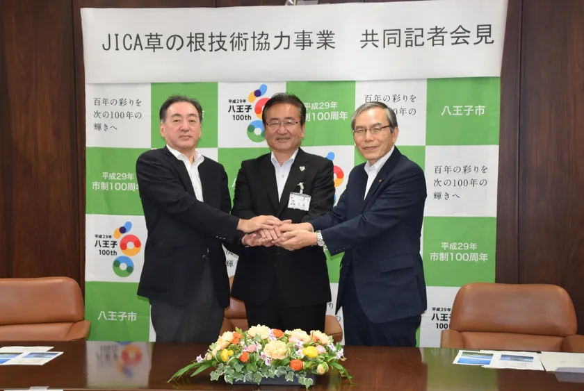 八王子市がJICA(国際協力機構)と協働して実施する「JICA草の根技術協力事業」に、八王子市と包括協定を結ぶ大学から創価大学が選出されました。8月28日(月)、八王子市役所で共同記者会見が開かれ、事業委託契約が締結されました。