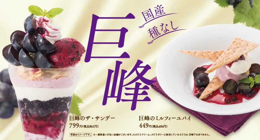 デニーズ、長野県産の巨峰を楽しむデザートを9月5日発売 フォトジェニックなサンデーやミルフィーユパイが登場!