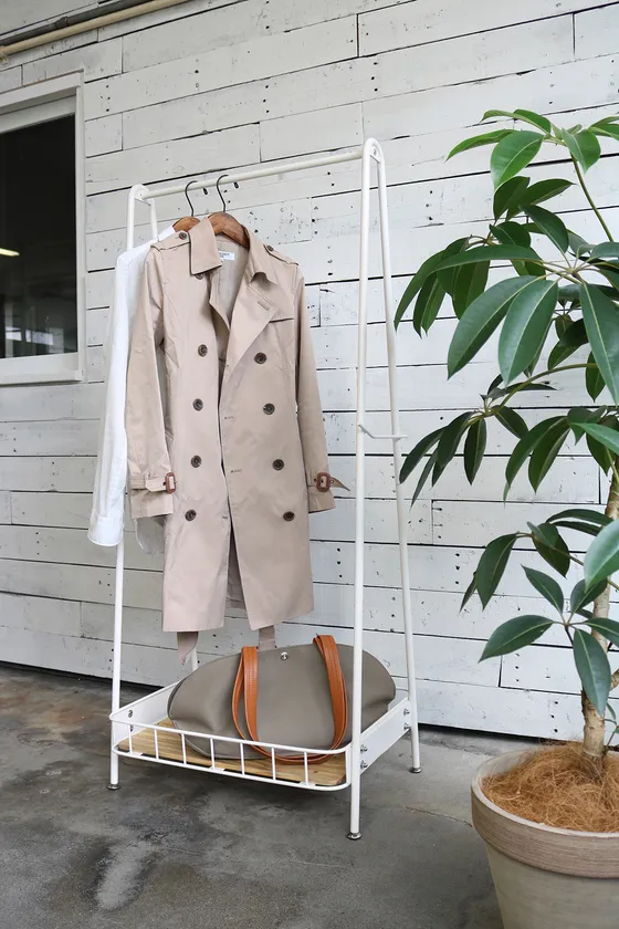 どこか懐かしい自転車のカゴをイメージしたコートハンガーです。サイドのバーは帽子やバックなど身の回りものを掛けるのに使用していただけます。お部屋に置いても圧迫感の出ないサイズ感になるよう、高さを約1.4mに抑えて目線を遮らないようにしています。シンプルにデザインされたコートハンガーはお部屋を選ばずお使いただけます。