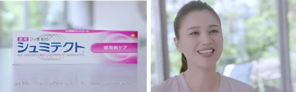 「シュミテクト 歯周病ケア」は、知覚過敏で歯がシミるのを防いで、歯周病(*2)も予防できます。新CMでは、遼河はるひさんが身近な歯のトラブルである知覚過敏について語りながら、「シュミテクト 歯周病ケア」を使った日々のオーラルケアの大切さを伝えています。