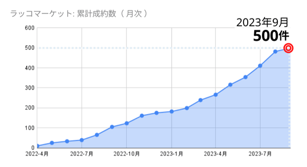 2022年4月〜2023年9月の累計成約数が、500件を突破しました。(9月12日付)