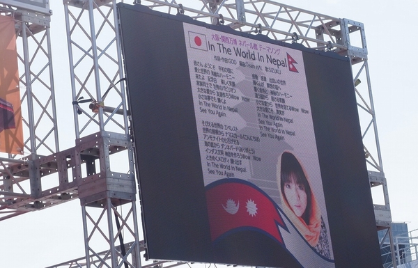 ステージ前には立ち見が出るほどの観客が集まり、そのステージ上にGODとSIZUKUが登場し、大阪・関西万博ネパール館への想いを熱く語り、GOD&SIZUKUで「おどるポンポコリン」を披露。その後、ネパール館のテーマソングに込めた思いを話し、SIZUKUが「In The World In Nepal」(作詞・作曲:GOD 編曲:Team HΛL 歌:SIZUKU)を披露すると、SIZUKUと観客が一体となり、盛り上がりました。