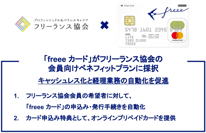 フリーランス協会が「freee カード」を会員向けベネフィットプランに採択。キャッシュレス化と経理自動化を促進、フリーランスの働き方改革を共同支援