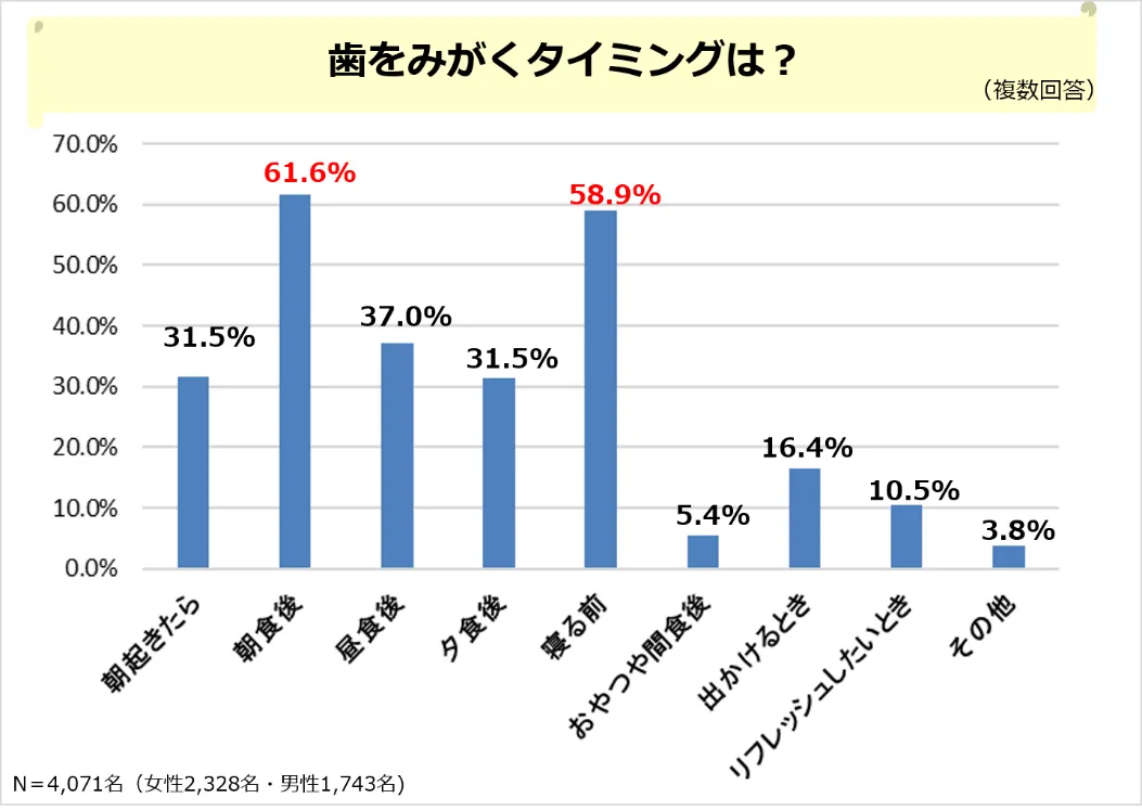 ■歯をみがくタイミングは「朝食後」と「寝る前」が習慣化