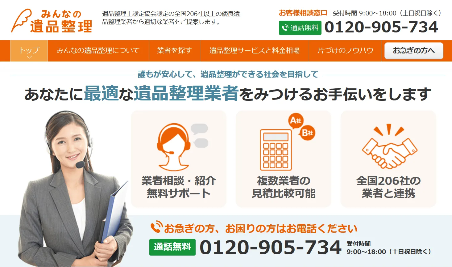 1. 全国の遺品整理事業者を検索し、比較検討が可能です。