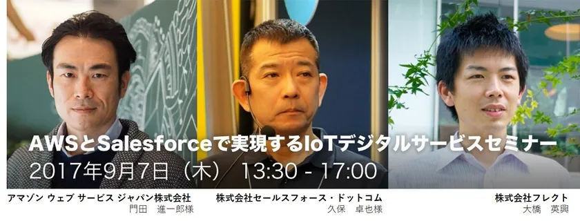 株式会社フレクト(本社:東京都中央区、代表取締役:黒川 幸治、以下「フレクト」)は来る2017年9月7日(木)に東京都目黒区にて、「AWSとSalesforceで実現するIoTデジタルサービスセミナー」を開催します。