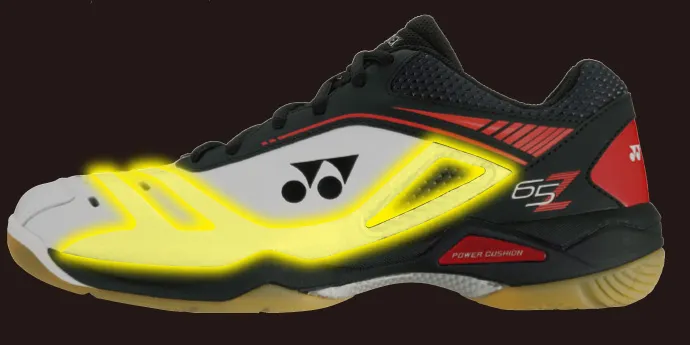 パワークッション65シリーズは激しいフットワークを支えるシューズとして、2001年の発売から16年続くロングセラーモデル。世界選手権2017男子シングルス優勝のビクター・アクセルセン(デンマーク)などトップ選手からも不動の人気を集めています。