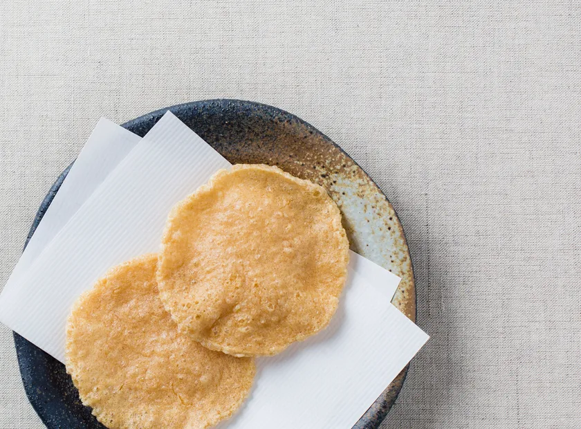 看板商品の「ふらいど」はサクサクと軽い食感が魅力。サクサク食感を叶えているのは油で揚げるという一八〇°のてまひまかけたこだわり製法。おせんべい=固いというイメージをくつがえします。