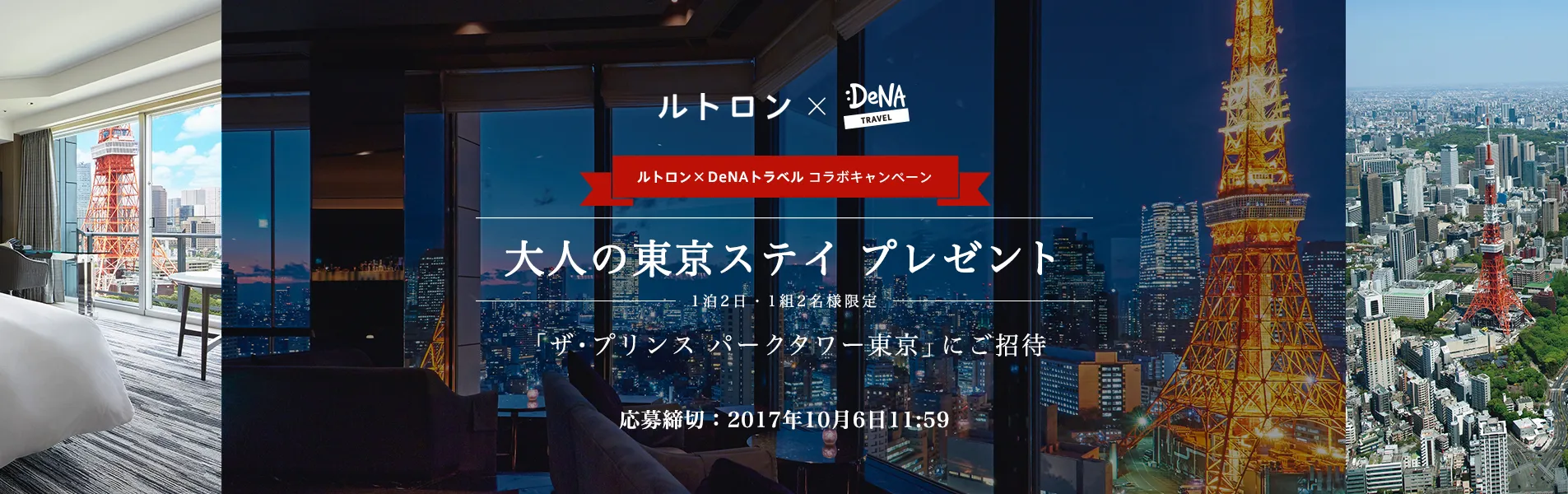 ご褒美ホテルとしてDeNAトラベルが選んだのが、東京タワーを間近に望む絶好のロケーションにも関わらず、芝公園の緑に囲まれ、都心とは思えないオアシスのようなホテルの「ザ・プリンス パークタワー東京」です。特設サイト上では、「ザ・プリンス パークタワー東京」の魅力を余すところなく動画で紹介しており、ルトロンの会員登録をした上で応募した人の中から抽選で1組2名様に今夏リニューアルされた「パノラミックツインルーム」または「パノラミックキングルーム」の宿泊券をプレゼントします。