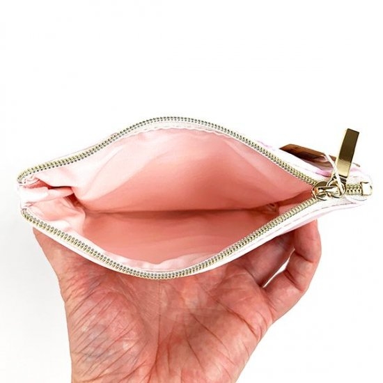 中の生地は桜柄になっています。ポケットも2つに仕切られていて、リップなどよく使うものやすぐに取り出したいものを収納できちゃいます。