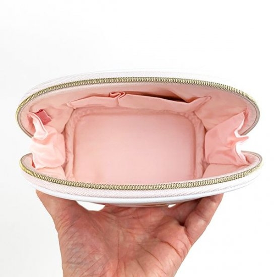 上部のファスナーを開くと、小物入れに♪小さめなメイクアイテムを入れておけば、これ一つでメイク直しも完了ですね。