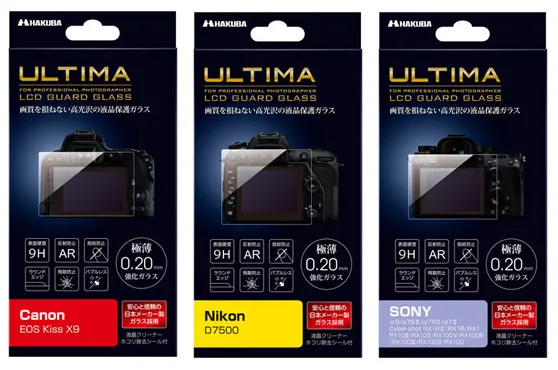画質を損ねず美しく画面を保護する、デジタルカメラ用ULTIMA 液晶保護ガラスにCanon「EOS Kiss X9」用、Nikon「D7500」用、SONY「α9」用の3製品を新発売!