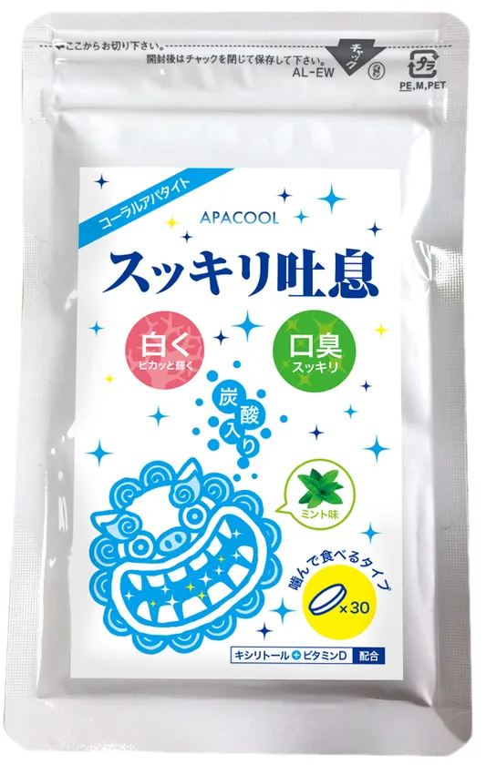 世界初!沖縄“化石サンゴアパタイト”のオーラルケアサプリ 「スッキリ吐息 APACOOL」を9月29日に発売!