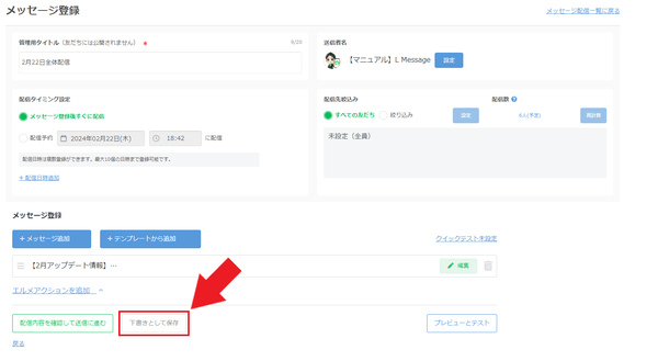 アップデートにより、メッセージ配信で下書き登録が可能になりました。