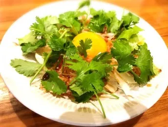 パクチーボンバー(オニスラ玉子のせ)(350円)