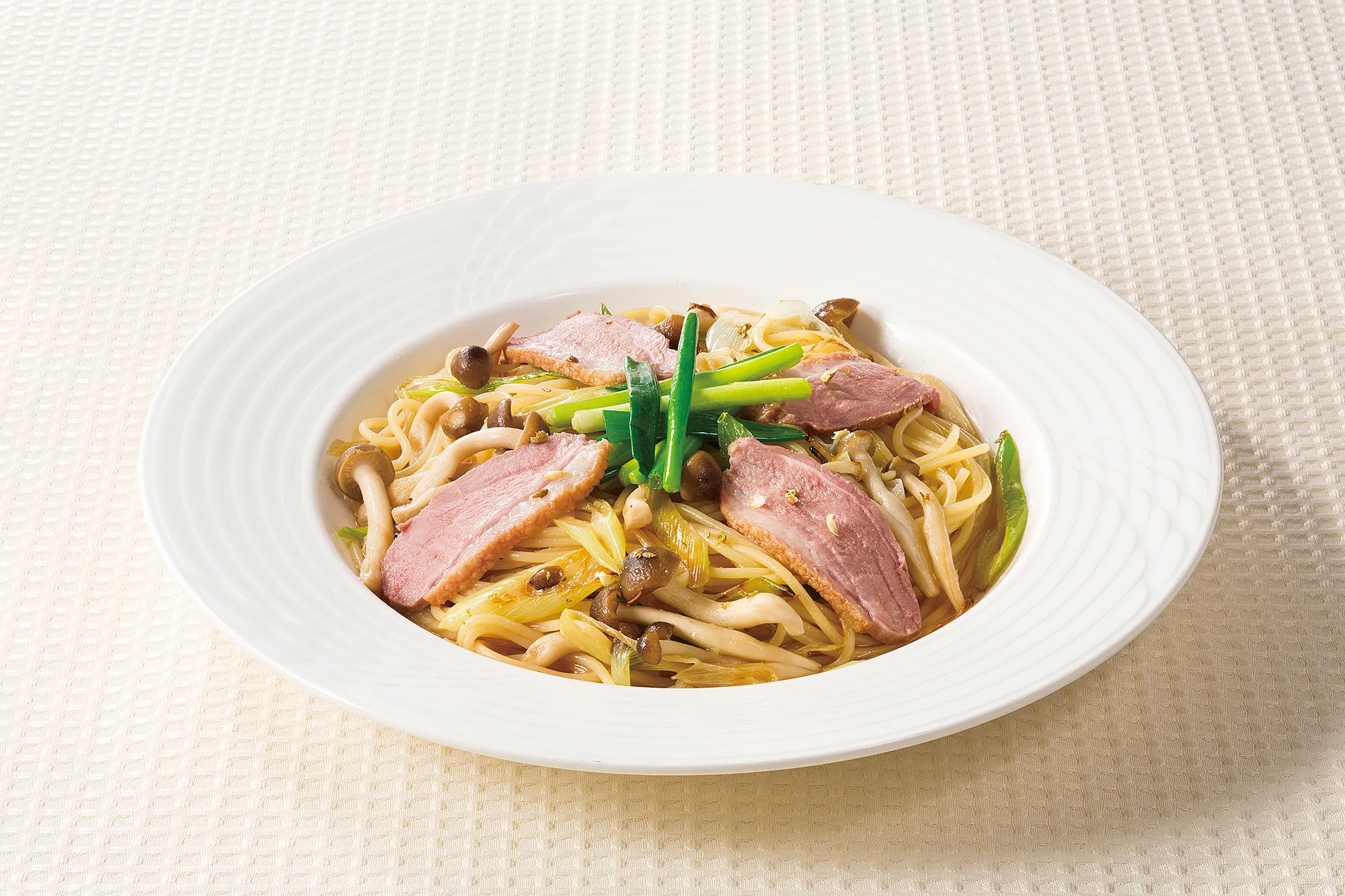 ■<商品名>合鴨と葱の和風スパゲティ ぶどう山椒風味
