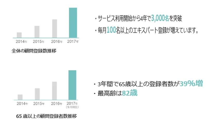 65歳以上のシニア顧問登録者数が3年で約40%増加