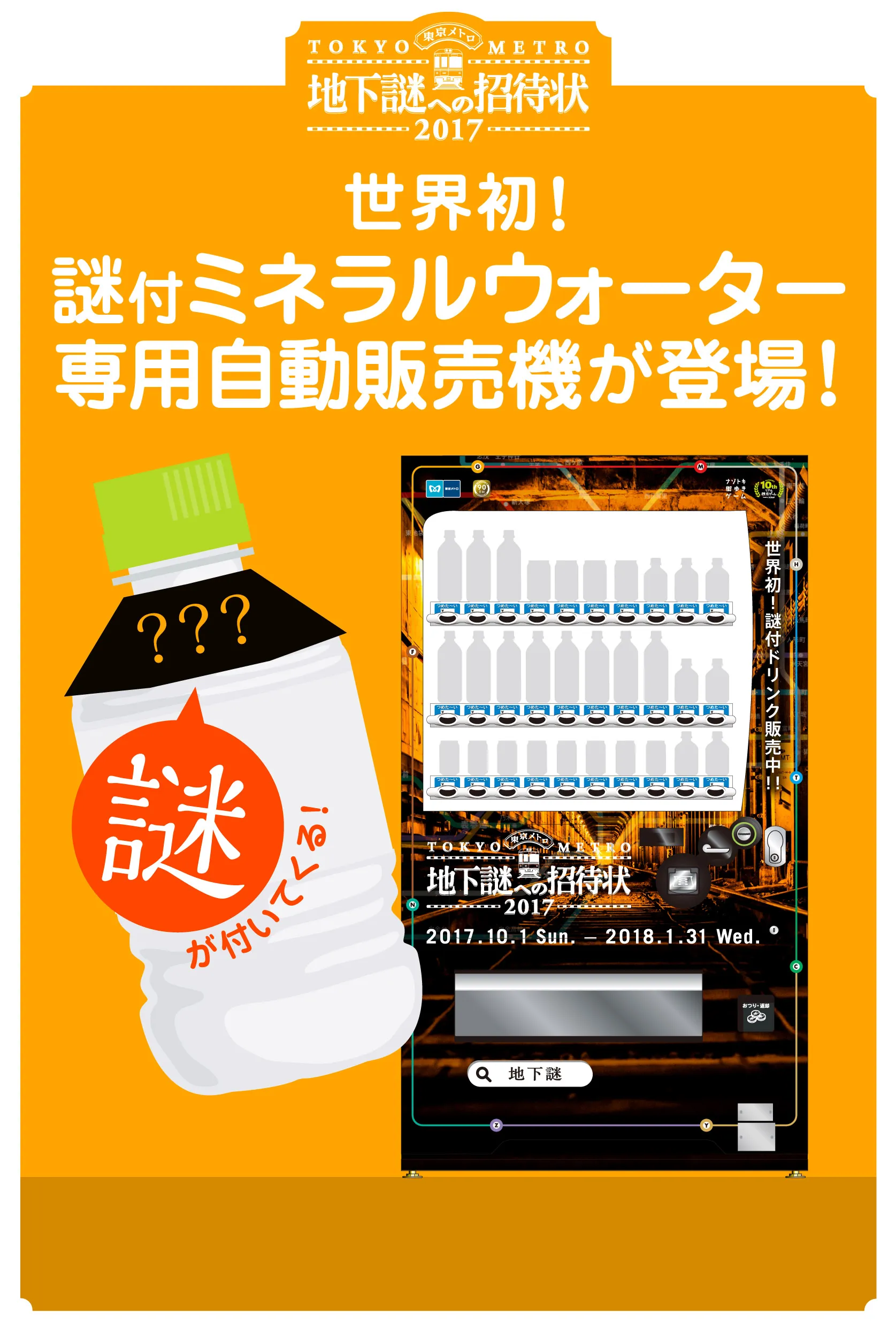 世界初!<謎付ミネラルウォーター>専用の 自動販売機が六本木一丁目に登場!! ナゾトキ街歩きゲーム「地下謎への招待状2017」 10月1日(日)よりスタート