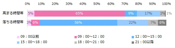【図3】 仕事の集中力が一番高まる時間帯はいつですか?一方、落ちる時間帯はいつですか?