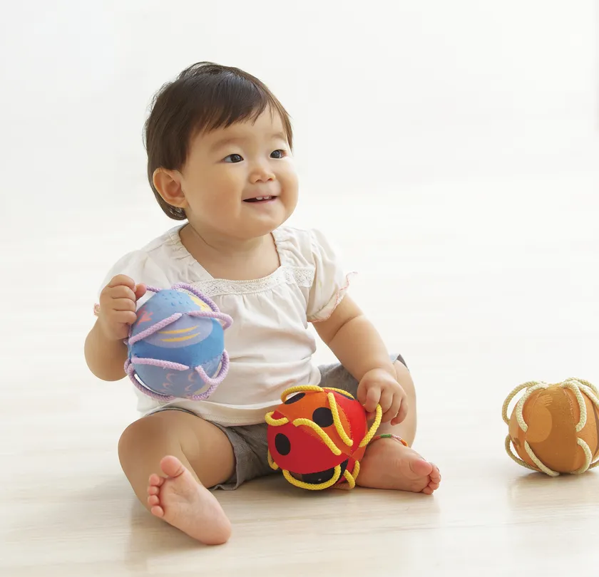 <持ちやすくかわいいデザイン!赤ちゃんの好奇心を育てるボール>