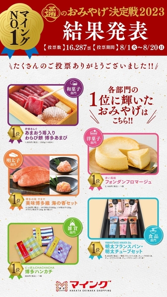 第10回目の記念開催!「マイングNO.1おみやげ決定戦」総勢75商品が、九州みやげNo.1の座を巡り、熱い戦いを繰り広げる!