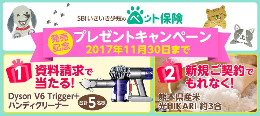 「SBIいきいき少短のペット保険」 発売記念プレゼントキャンペーン 9月19日より開催