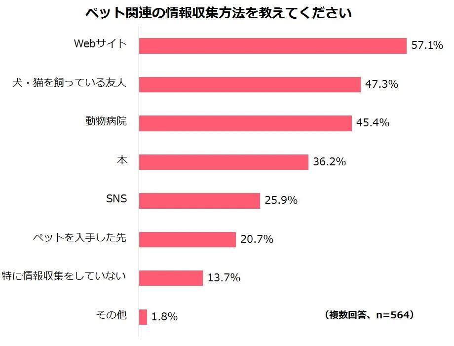 ペット関連の情報を収集する方法では、「Webサイト」が最多となりました。