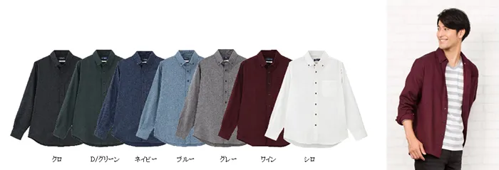 ・フランネル無地ボタンダウンシャツ ¥1,990+税 (サイズ:M、L、XL)