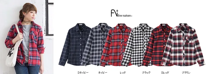 ・フランネルチェックレギュラーシャツ ¥1,990+税 (サイズ:M、L、XL)
