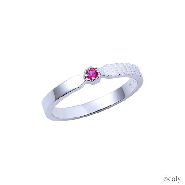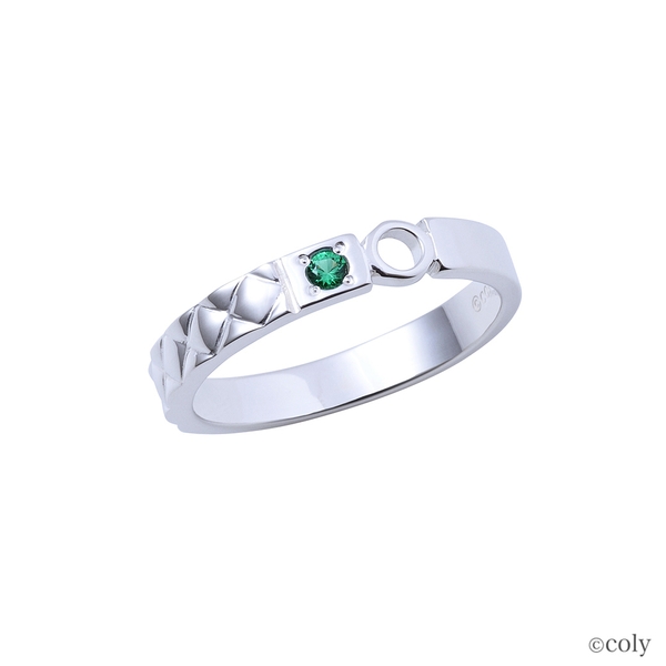 「魔法使いの約束」に登場する北の国の魔法使い、ミスラをイメージしたシルバーリングです。ミスラの腕輪をモチーフとしてリングに取り込んだ平打ちタイプのデザインに、イメージカラーストーンをセット。内側には魔道具のアイコンを刻印しました。透かしの柄が上品に身に着けられるデザインです。