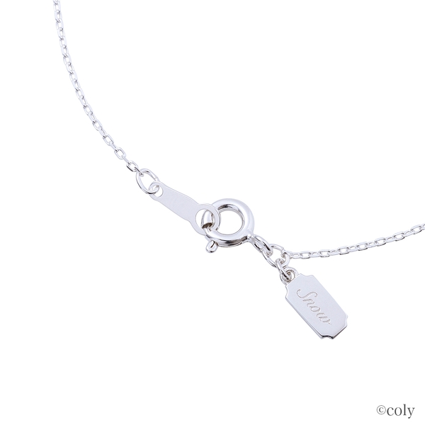 「魔法使いの約束」に登場する北の国の魔法使い、スノウをイメージしたシルバーネックレスです。衣装の柄をモチーフにしたデザインに、イメージカラーストーンをセット。エンドチャームのプレートには名前を刻印しました。ホワイトとお揃いのデザインです。