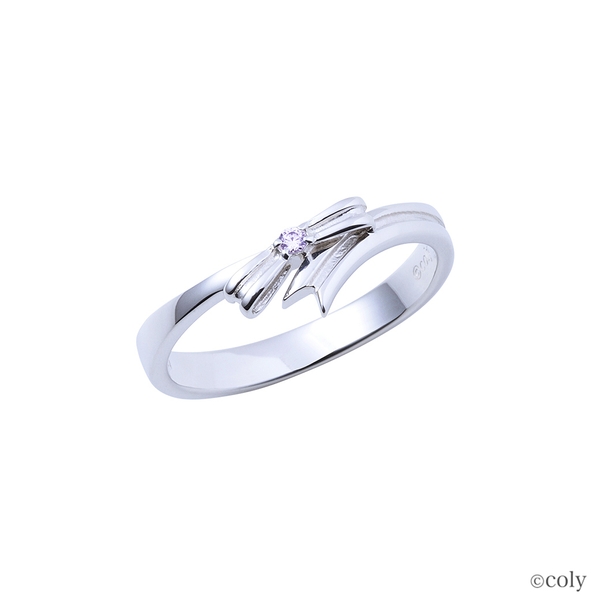 「魔法使いの約束」に登場する北の国の魔法使い、スノウをイメージしたシルバーリングです。衣装のリボンをモチーフとしてリングに取り込んだV字タイプのデザインに、イメージカラーストーンをセット。内側には魔道具のアイコンを刻印しました。ホワイトのリングとお揃いのデザインです。