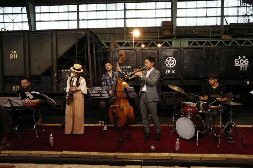 SLパレオエクスプレスをバックに検修庫で響き渡る、「A列車で行こう」を始めとするJAZZのヒットナンバーをお楽しみいただけます。ワイン片手にSLを眺めながら大人な時間をお過ごしください。