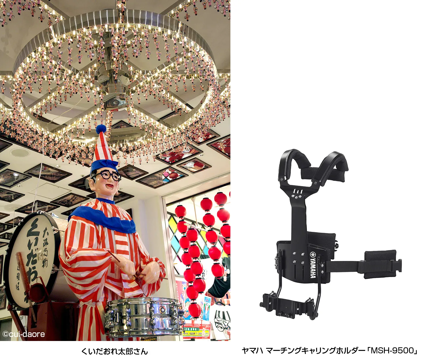 株式会社ヤマハミュージックジャパン(本社:東京都港区、代表取締役社長:小林和徳)は、2008年まで営業を行っていた飲食店「大阪名物くいだおれ」のマスコット、くいだおれ太郎さんにヤマハ マーチングキャリングホルダーの新製品「MSH-9500」(2017年9月発売)を装着し、9月22日(金)~24日(日)の3日間、大阪・道頓堀の中座くいだおれビルにて展示します。