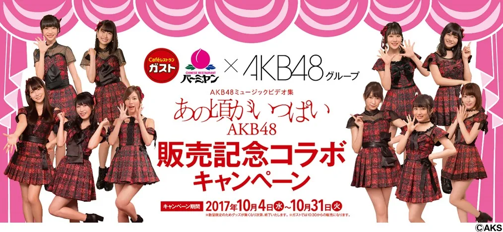 株式会社すかいらーく(本社・東京都武蔵野市、代表取締役社長兼CEO・谷 真、東証一部:証券コード3197)が展開するファミリーレストラン「ガスト」と中華レストラン「バーミヤン」では、日本を代表するアイドルグループ「AKB48グループ」が2017年10月4日(水)に販売するAKB48ミュージックビデオ集「あの頃がいっぱい」の販売を記念したコラボレーション企画を開始いたします。