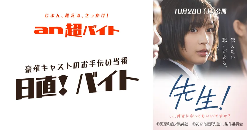 「an超バイト」×映画 『先生!、、、好きになってもいいですか?』 “日直!”バイト ~イベントのお手伝い当番募集! 広瀬すずさんほか、豪華出演キャスト参加予定~