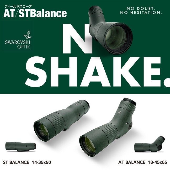 携帯性に優れた一体型フィールドスコープ「ATC/STC」のコンセプトを継承したコンパクトなボディに強力な防振機構を搭載。これまで三脚なしでは困難だった45倍(STは35倍)という高倍率での観察を手持ちで可能にするという、探鳥のスタイルを大きく変えるオンリーワンのスコープです。三脚使用時でも、風や操作による微細な揺れをシャットアウトし、極めてクリアな視界を提供。アングルタイプの「AT BALANCE」と、ストレートタイプの「ST BALANCE」の2タイプをラインナップしています。